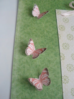 I love to "fussy cut." Yes, I cut out all the butterflies! Love how the wings stand up? I used hot glue and held the wings up until the glue dried. So cute!!